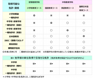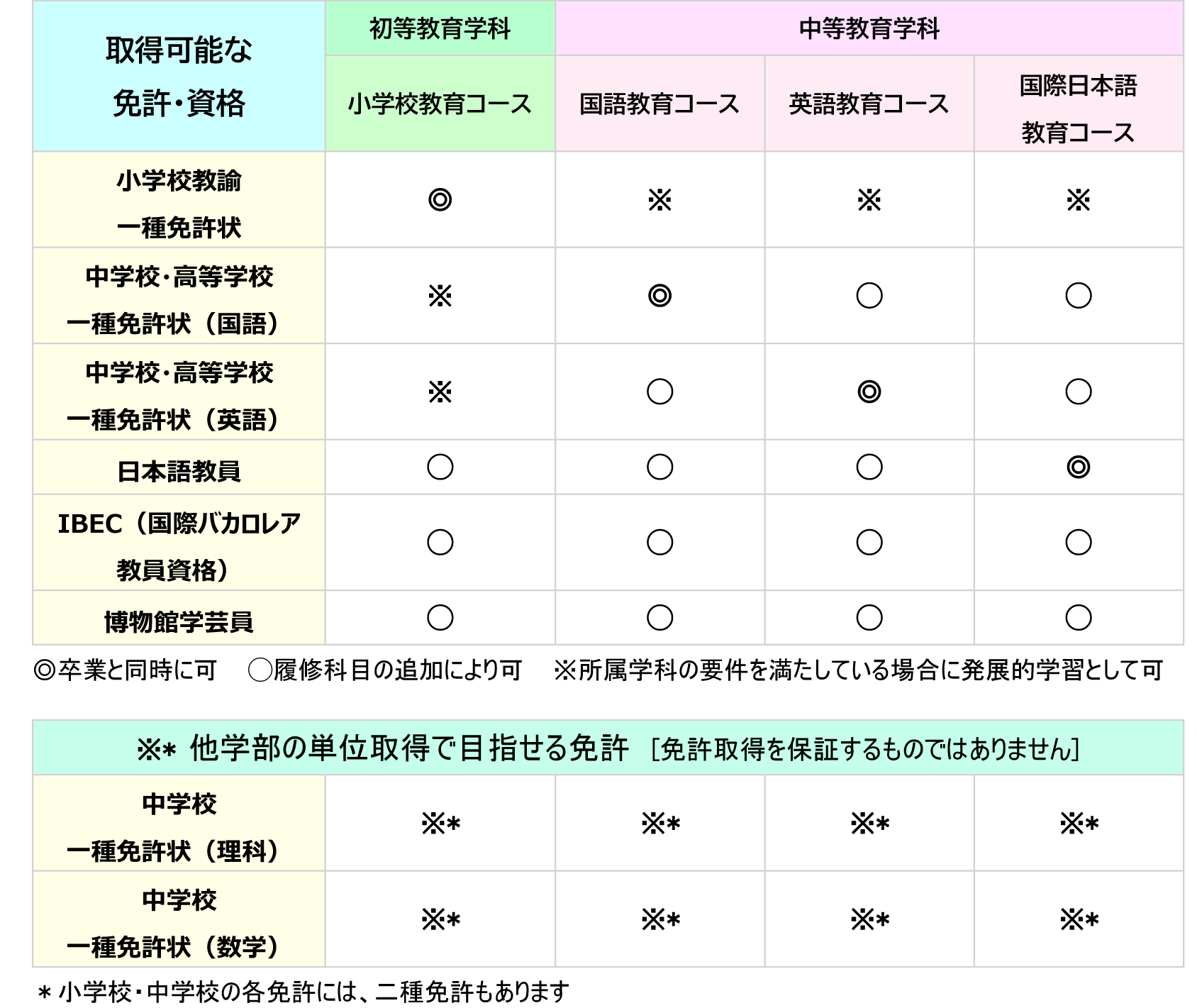 ① 学部内で複数免許(小+中・高国語、小+中・高英語など)取得を目指すことができます。